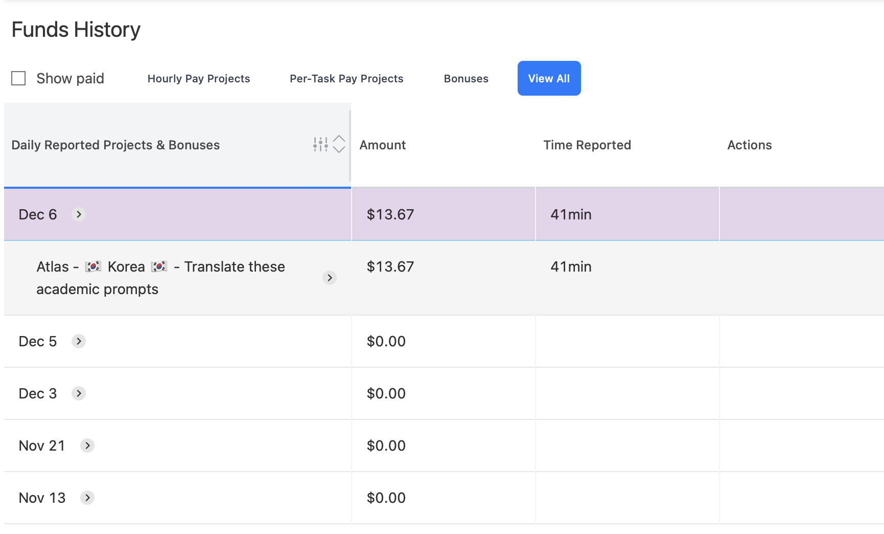 몇가지 Qualification을 받았는데, 실제로 프로젝트가 들어오지를 않아서 최근 한달간은 저거 하나 외에는 수익이 아예 없었다.